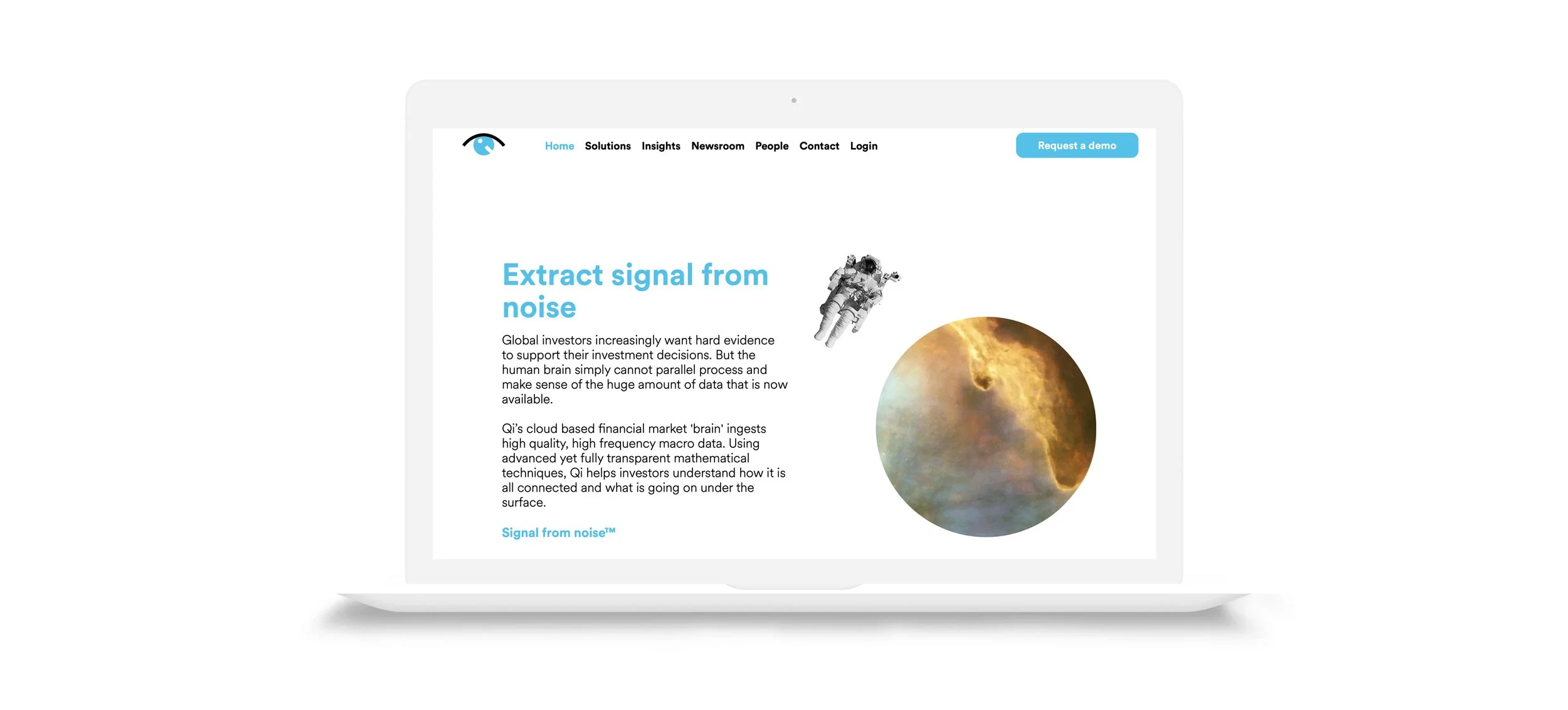 Quant Insight (Qi) had established an edge over competitors using AI to capture & quantify market data, extracting unique pricing signals for financial clients. The company had grown quickly, was developing its strategy and wanted assistance with website messaging and navigation, customer perception analysis and sales conversions.